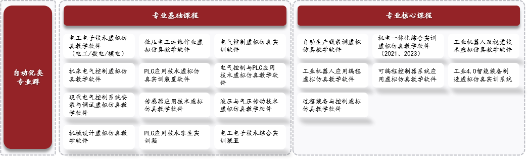 通過專業(yè)基礎(chǔ)課、專業(yè)核心課、專業(yè)拓展課的延伸拓展,提供圍繞自動(dòng)控制相關(guān)基礎(chǔ)理論、核心能力及擴(kuò)展應(yīng)用的課程內(nèi)容,通過軟件及資源、硬件設(shè)備和工程實(shí)訓(xùn)的體系,為教學(xué)提供全方位支撐。